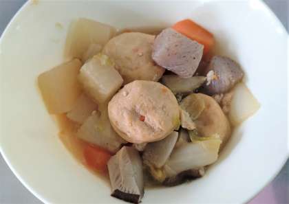 給食の一口がんもは、とうふやにんじん、でん粉などから作られた一口サイズの小さいものです。