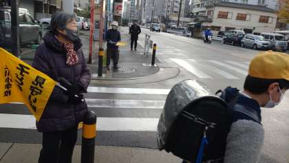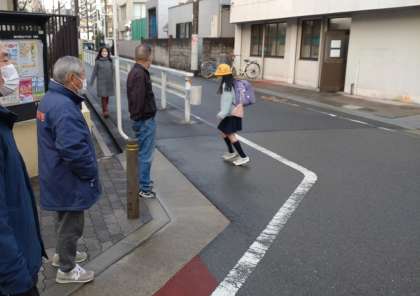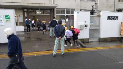 12月22日(木)、本日は、児童集会、大掃除があり、給食が終了します。明日は、2学期の終業式で、11時30分ごろ下校予定です。写真は、教職員、地域の見守り隊の方々の見守る中、元気に登校している子どもたちの様子です。