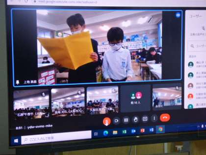 児童代表として3年の児童2名が2学期の振り返りと3学期に頑張りたいことを発表しました。