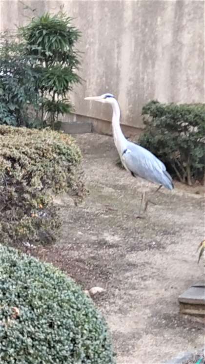 朝、正門を入った池のそばに、アオサギが飛来してきました。子どもたちは、突然の来校者に驚いていましたが、真剣な表情で観察していました。調べてみるとアオサギは、ヨーロッパからアジア・アフリカ大陸にかけて分布し、日本では留鳥、冬鳥、夏鳥の種に分かれているそうです。本州、四国に生息しているアオサギは、周年移動せずに生息する留鳥といわれています。
