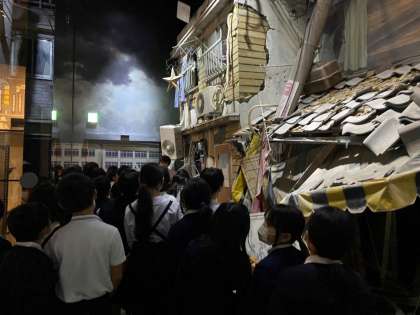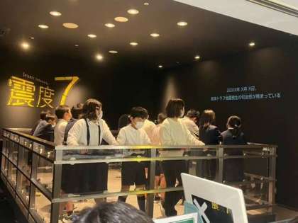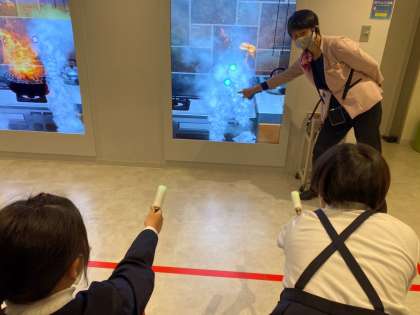 消火器の使い方や煙の中の歩き方を体験したり、地震で倒壊した街並みのセットを見学したりしました。