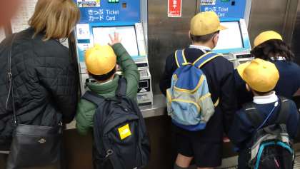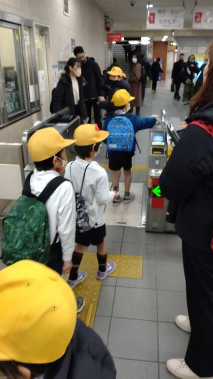 本日、なかよし学級で、図工展の鑑賞に、大阪市教育会館へ行きました。図工展は、第42回「障がいのにある子に学ぶ」図工展で、大阪市の多くの学校から平面・立体作品が出展されています。写真は、自分で切符を買って改札に入る子どもたちの様子です。子どもたちは、自分で工夫しながら購入しました。自立活動として、とても貴重な経験になったと思います。