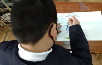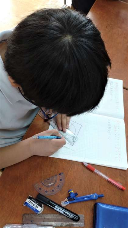 なかよし学級で公開授業がありました。子どもたちは、「正六角形をかこう」という課題に対して熱心に取り組んでいました。円の中心のまわりの角を当分して、コンパスや分度器などを使って丁寧に正六角形の作図をすることができました。