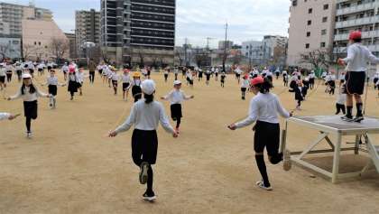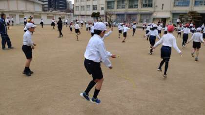 なわとび週間中は、運動委員会の子どもたちが、お手本となって活動をリードしています。子どもたちは、事前の練習も熱心取り組んでいました。写真は、今日の取り組みの様子です。どの学年の子どもたちも、いろいろな技ができるようになってきました。