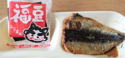 給食では、節分の行事献立として、「いわしのしょうがじょうゆかけ」と「いり大豆」が登場します。