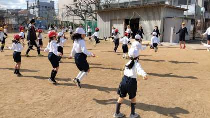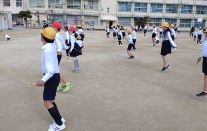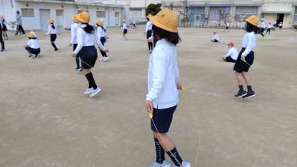 写真は、運動委員にチャレンジして跳ぶ、子どもたちの様子です。