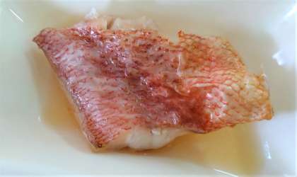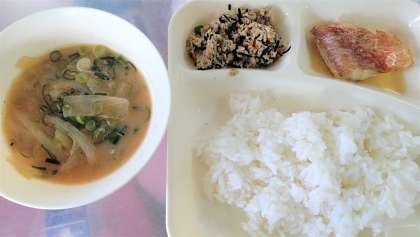 今日の給食は、あかうおのレモンじようゆかけ、みそ汁、高野どうふのいり煮、ごはん、牛乳です。