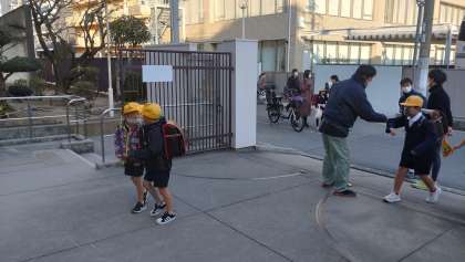 写真は、今朝、元気に登校する子どもたちの様子です。