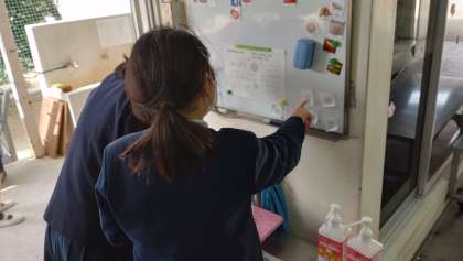 ※写真は、明日の献立を記入したり、掲示を張り替えたりしている給食委員会の子どもたちです。毎日、頑張っています。