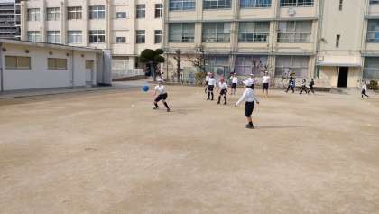 写真は、ボール運動クラブのドッジボールをしている様子です。高学年のドッジボールは、迫力があります。