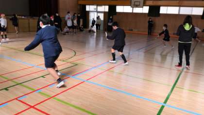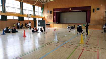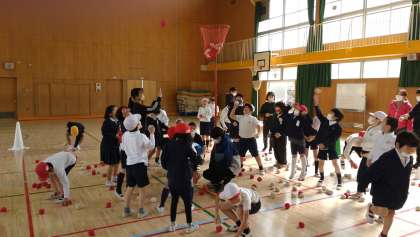 なかよしタイムに、「なかよし学級 進級・進学を祝う会」のスピーチ練習とゲームをしました。ゲームは、ピンポン玉リレーと玉入れです。ルールを守るという意味を学びながら、異学年で楽しく交流しました。上段の写真は、学年ごとにスピーチ練習をしている様子です。中下段は、ゲームの様子です。