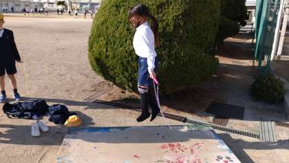 3、4、5年生合同でドッジボールしている子どもたちもいて、異学年で楽しく遊んでいる様子は、とても微笑ましく思いました。