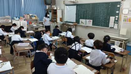 1年生が、物語文「スイミー」の学習をしています。おはなしのすきなところを見つける学習です。この時間は、物語の主人公の行動や会話などを手がかりに,場面の様子を想像しながら読み取っています。