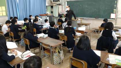 『「言葉のタイムカプセル」を残そう』の学習をしています。1年間に書いた文章を読み返し、自分の成長を振り返るとともに、10年後の自分に伝えたいことを手紙に書く学習です。二十歳の自分を想像して、自分の好きなことや頑張っていることをもとにして書いていきます。