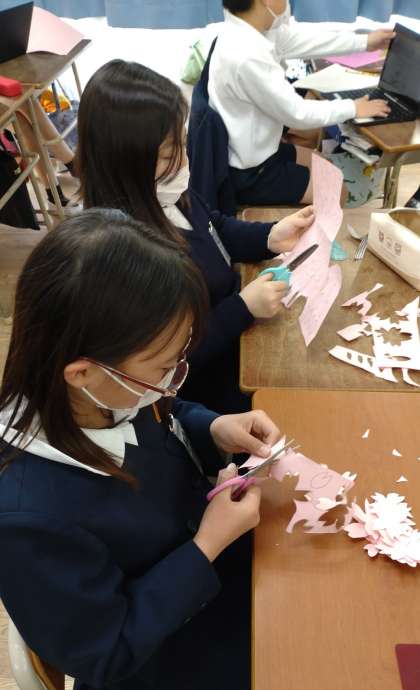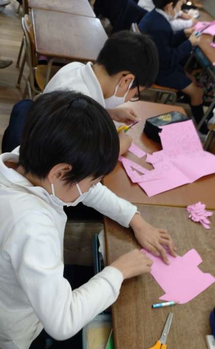 4年生が6年生の卒業に向けての掲示を作っています。心のこもった掲示になるように子どもたちはとても熱心に取り組んでいます。