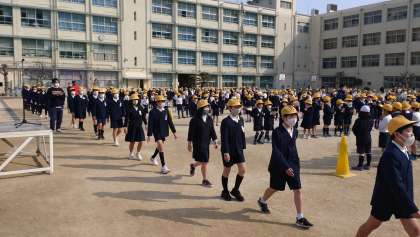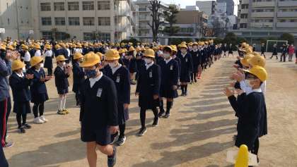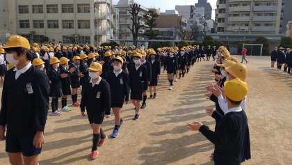 写真は、花道を通って拍手の中、退場する6年生の様子です。卒業まであと少しです。