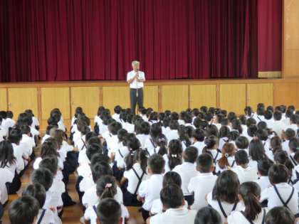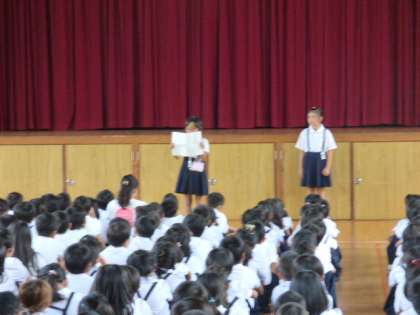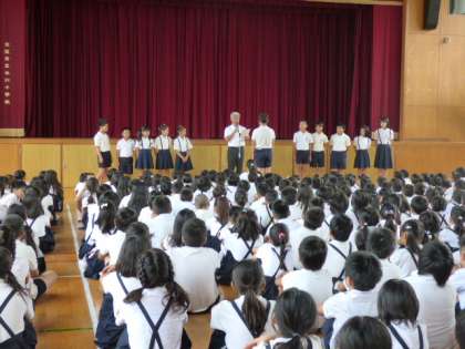 また、4年生の代表2人が、夏休みの思い出や2学期の目標などを発表し、最後はみんなで元気に校歌を歌いました。