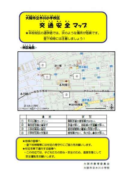 ※木川小学校交通安全マップは、配布文書のお知らせで公開しています。