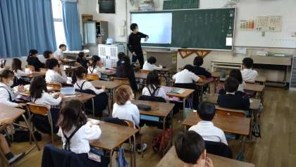 2年生が係活動の役割をきめていました。活動内容を確かめながら、話し合っています。