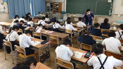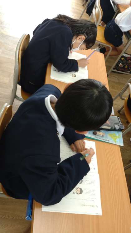 2年生で習った漢字を振り返っています。文章の中で使う漢字を丁寧に書いています。