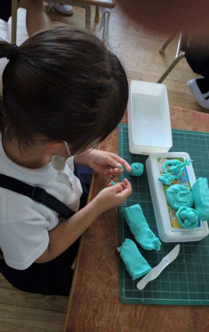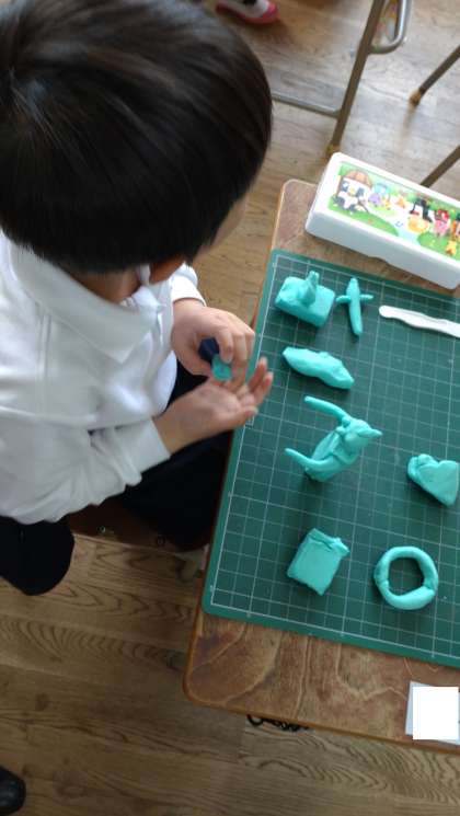 昨日に引き続き、1年生が粘土を使った創作活動に取り組みました。自分の作りたいものを創作していきました。