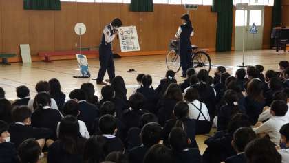 高学年では、自転車の正しい乗り方なども教えていただきました。写真は、高学年の交通安全教室の様子です。