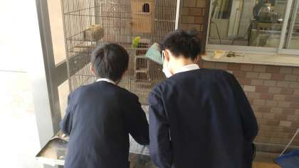 朝、鳥小屋の様子をのぞくと、環境美化委員会の子どもたちが、小鳥のお世話をしていました。高学年の子どもたちが、各委員会で学校全体のために活躍しています。