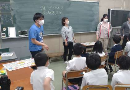 今日のなかよしタイムで、2教室に分かれて、絵本の読み聞かせやグループでのマナーについて学習しました。
