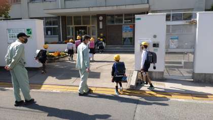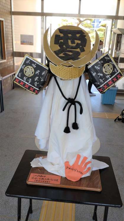 5月1日(月)、本日は、全校朝会、聴力検査4年、心臓検診、児童宅確認があります。児童は、5時限目終了後(14:30頃)に下校します。今朝も地域の見守り隊の方々の見守りの中、子どもたちは元気に登校しています。下段の写真は、管理作業員さんがダンボール紙で作った手作りの兜です。朝、登校していた子どもたちが興味深く見ていました。