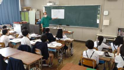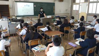 折れ線グラフや棒グラフを組み合わせたグラフをよむ学習に取り組んでいます。2つのグラフを関連づけて、どんなことがわかるかを考えたり説明したりしています。