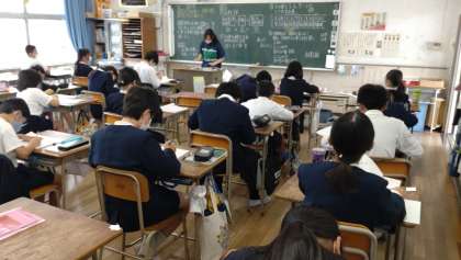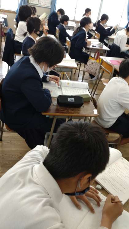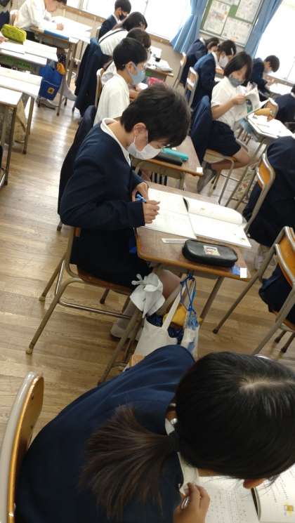6年生が算数で「文字と式」の学習をしました。x や y を使って式に表したり、文字を使った式の理解や対応する値を求めることができるように学んでいます。写真は、子どもたちが真剣に課題解決に取り組んでいる様子です。