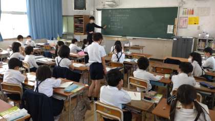 算数の学習で子どもたちに育てたい資質・能力は、数学的な見方・考え方を働かせ、数学的活動を通して、数学的に考える資質・能力です。そのために学習では、課題に対して「見通し」をもって解決することが重要になります。写真は、3年生の算数で「見通し」について話し合っている様子です。