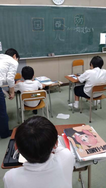 なかよし学級で、漢字の学習に取り組みました。「効」「酸」「因」の新出漢字を学んでいます。