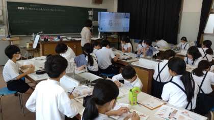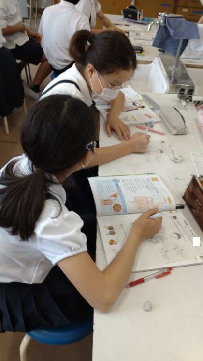 6年生が理科で、「食べ物のゆくえ」ついて学習しています。「食べ物は、体のどこを通って、どのように変化していくのか。」という課題に対して、消化管を通る間に消化・吸収されることなどを資料を活用して学んでいます。