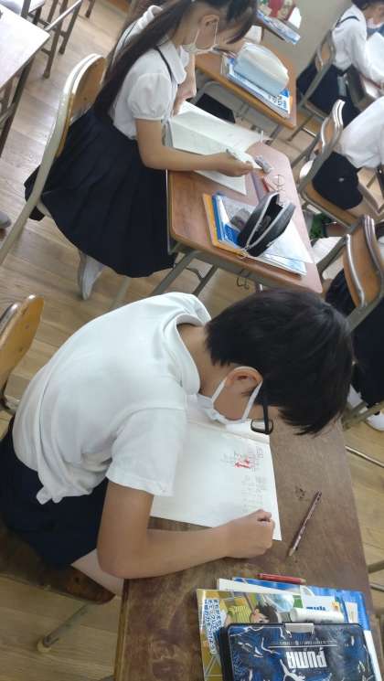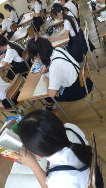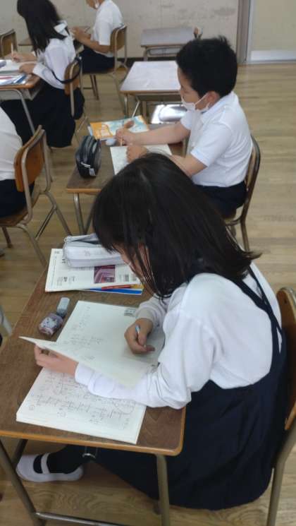 気づく段階の次に、課題解決のための「見通し」を考えます。写真は、子どもたちが個々に「見通し」を考え、ノートに書いている様子です。