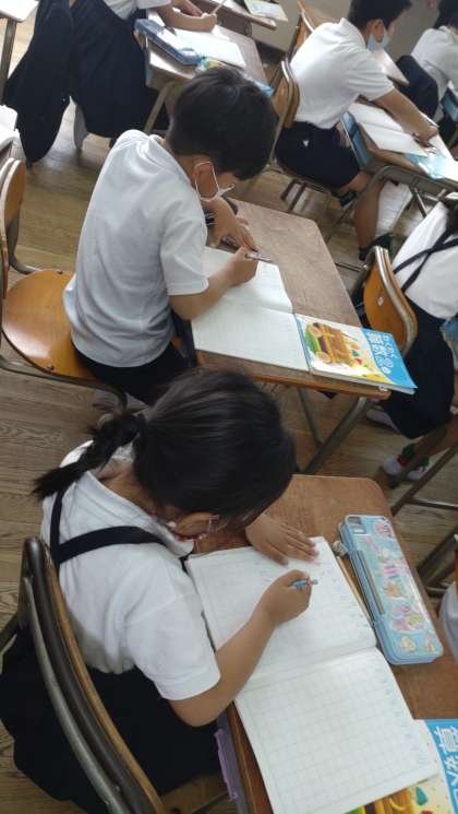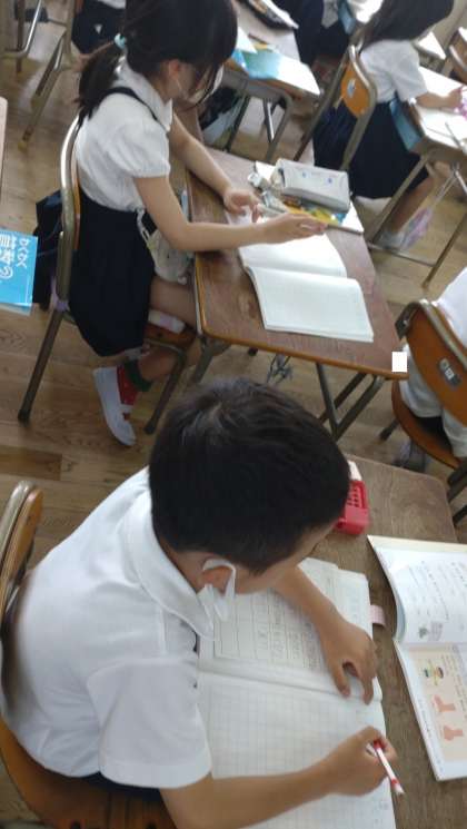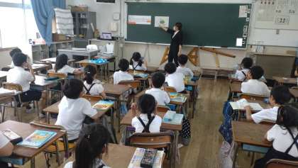 4年生に続き、2年生が算数で研究授業を行いました。単元「長さ」の学習です。写真は、問題を知る導入段階の子どもたちの様子です。