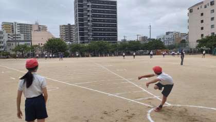 5月23日(火)6年生 新体力テスト〜ソフトボール投げ