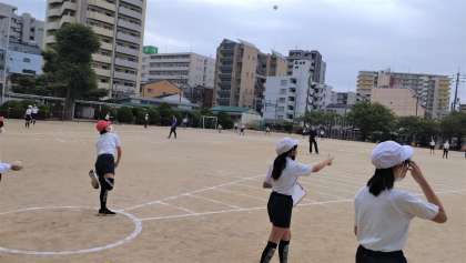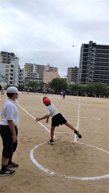 1限目は、6年生の新体力テスト、ソフトボール投げがありました。子どもたちは、全力で取り組んでいます。