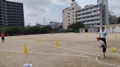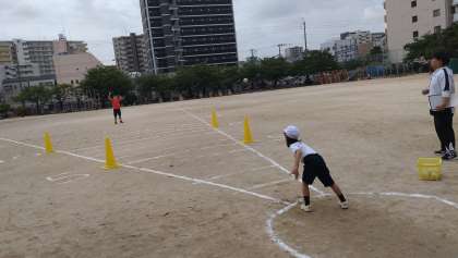 1年生もはじめての新体力テストでした。一生懸命にソフトボールを投げています。