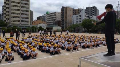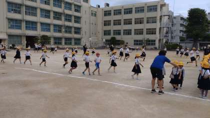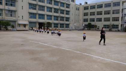 引き渡し訓練の前に、地震・津波の避難訓練を行いました。地震をはじめとした自然災害は、いつ、どこで、どのように発生するかわかりません。学校以外の場所で地震などに遭遇したときに、自分の命を守るためにどような行動をとればいいのかを判断できることが大切です。ご家庭で、学校外での避難の仕方などをお子さんとお話していただければと思います。写真は、避難訓練の様子です。