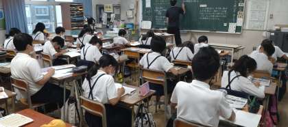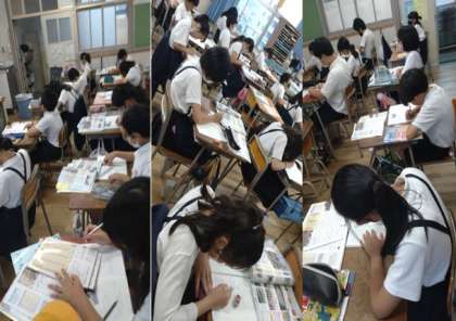写真は、午前中の6年生の子どもたちの授業の様子です。東日本大震災の復旧・復興について調べ考えています。