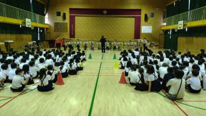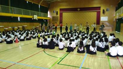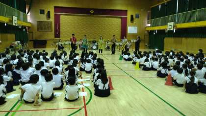 本日、音楽鑑賞会がありました。相愛大学の音楽部・大学院音楽研究科の方々に来ていただき、サクソフォンアンサンブルと打楽器による編成での演奏を楽しみました。