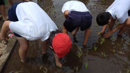 子どもたちは、とても熱心に田植えの活動に取り組んでいました。
