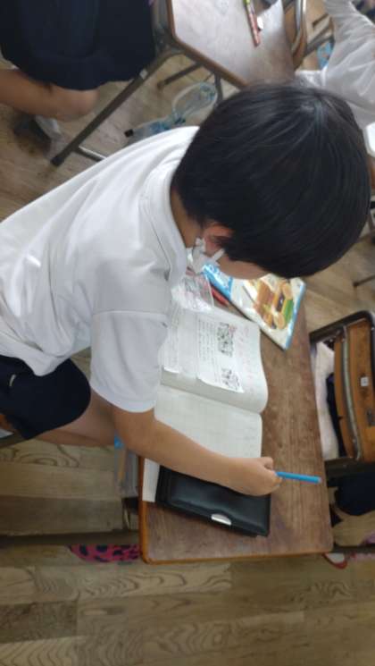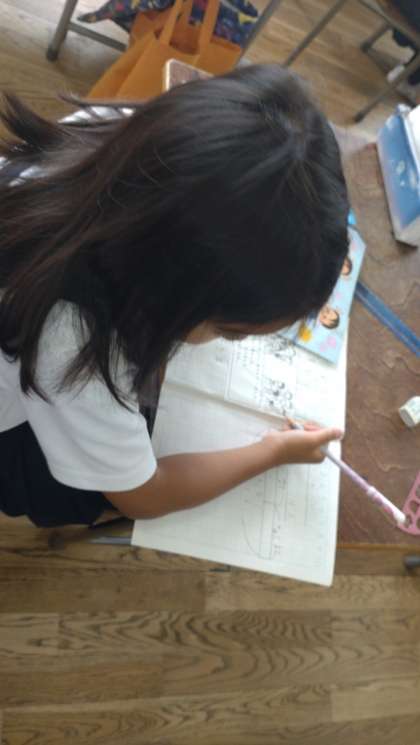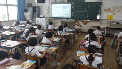 2年生で、テープ図をもとに課題を解決する学習に取り組んでいます。この時間は、問題場面から数量の関係をテープ図に表しています。