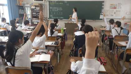本日の5限目に6年生の算数の学習で、教育委員会より講師の先生に来ていただき研究授業が行われました。「逆数の意味を知る」学習で、定義や逆数の求め方などを学びました。グループでの話し合いなど、子どもたちは活発に意見を交流していました。