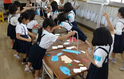 子どもたちは、それぞれの係としての役割を明日の本番に向けて、しっかりと練習しています。