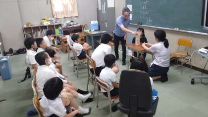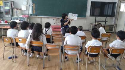 毎週、金曜日の3限目は、なかよし学級の子どもたちが集まって、異学年で学習に取り組んでいます。今日は、絵本の読み聞かせとゲームがありました。ゲームでは、特に集団の中で、ルールやマナーを守って楽しめることを目標にしています。写真は、読み聞かせとゲームやルールの説明を聞いている子どもたちの様子です。