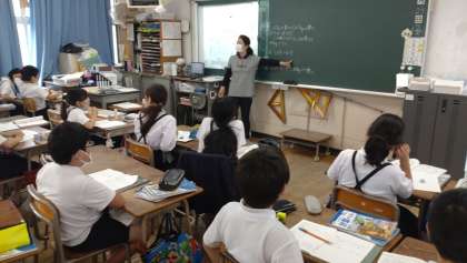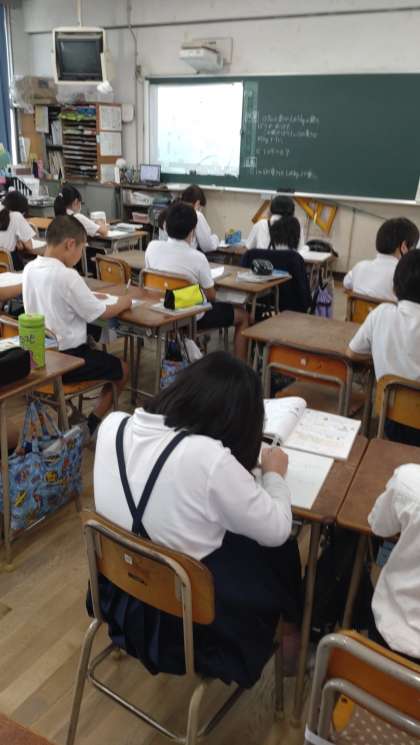 5年生が算数で「割合を表す小数」について学習しました。割合や数量が小数で表された場面で、基準量を求める学習課題に取り組んでいます。