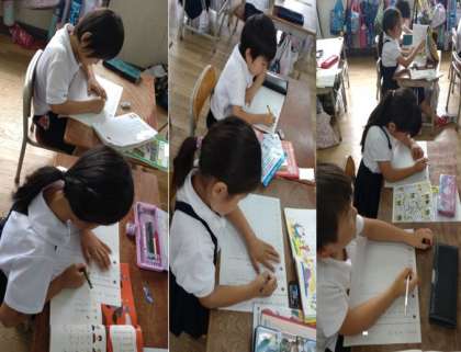 単元「あひるのあくび」の学習をしました。自分で、「あひるのあくび」をまねて詩を作っています。