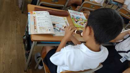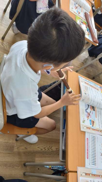 3年生がリコーダーの演奏に取り組んでいます。タンギングに気をつけて、1音1音丁寧に演奏しています。
